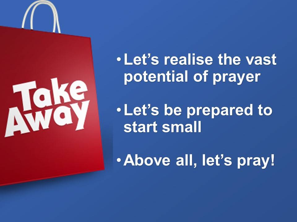 Realise that more things are accomplished by prayer than we can ever know this side of eternity. John Wesley boldly asserted that ‘God does nothing but in answer to prayer’. See Acts 2. The vast potential of prayer goes largely untapped today: we have this great resource, and we use it so stingily. We are like millionaires who have somehow been persuaded to think that we are paupers and so seldom draw upon those vast riches of grace that God has stored up for us.