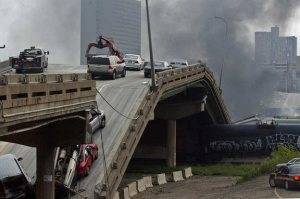 At about 3pm on 1st August 2007 a interstate bridge over the Mississippi River in Minneapolis collapsed. Workmen had, just a few days previously, been conducting extensive repair work to the 40-year-old bridge. There were tons of building materials piled up on the bridge at the time of its collapse.